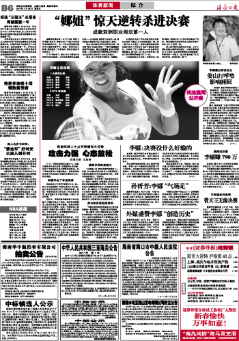 海南日报 体育新闻 014 2011-01-281 2011年01月28日 星期五