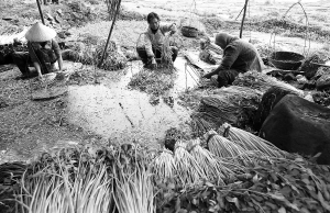 临高县多文镇多文村南丽潭温泉泉水种植的水芹口感香脆、嫩滑,深受消费者欢迎,每天有7000多斤水芹供应本省市场。图为多文村村民在温泉水中清洗水芹菜。本报记者 苏晓杰 摄