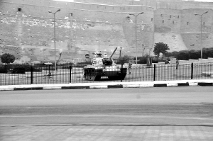 | 1月29日,在埃及首都开罗,坦克停在萨拉丁城堡前。 新华社记者朱俊清摄