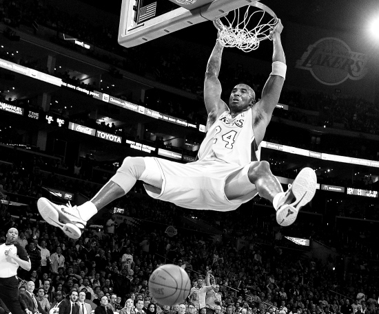 29日,在NBA常规赛中,湖人队主场以95:100不敌国王队。图为科比·布莱恩特在比赛中扣篮。 新华社发
