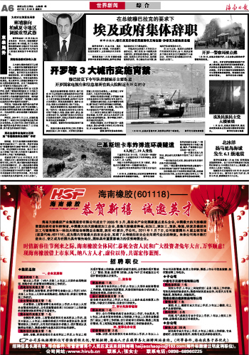 海南日报 世界新闻 006 2011-01-301 2011年01月30日 星期日
