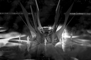 | 一月三十日,第七届亚洲冬季运动会开幕式在哈萨克斯坦首都阿斯塔纳举行。图为火炬手在开幕式上点燃火炬。 新华社发
