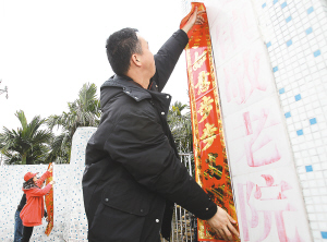 1月30日,“定安爱心团”志愿者到全县15家敬老院送年货、贴春联、打扫卫生。 本报记者 李英挺 摄