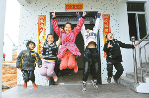 | 1月30日,江村的孩子在新楼房前欢呼雀跃。 本报记者 王凯 摄 |