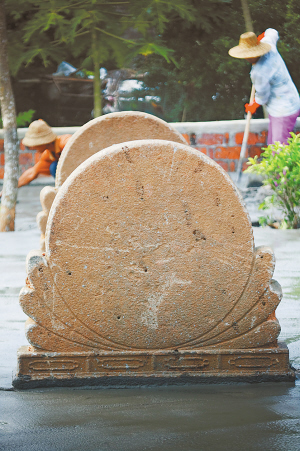 村口,几尊1米多高的石制大水缸,缸底、周边浮雕虽有些斑驳不清,仰状莲花纹却依稀可辨。时代已然久远,起初定然相当精美。还有一对抱鼓石,上呈鼓形,鼓下为莲花座。鼓面直径约1米。抱鼓石,在古代大多竖立在官府门前,是古人身份的重要标志,可见当年拥有这对抱鼓石的主人身份是比较高贵的。一户老宅前,还有一块上马石和几口石制花池,不知在风雨中静静地坐了多少年。不用进村,村口的这些器物,足以让人遥想当年村头红翎相映、衣锦还乡的盛况。