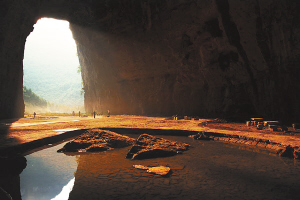 | 清江奔腾入洞,形成腾龙洞“卧龙吞江”的美景。 |