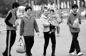 1月30日下午,在海口港码头,身穿印有“国际旅游岛志愿者”红色马甲的志愿者们,为怀抱孩子的乘客提供帮助。志愿者的身影,是春运期间码头靓丽的风景线之一。 本报记者 张杰 摄
