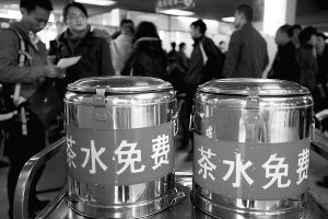 免费茶水 一月三十日,海口港工作人员为候船的乘客提供免费茶水。本报记者 张杰 摄
