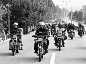 | “铁骑大军”行驶在广东封开县国道上。 新华社发 |