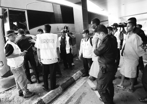 1月31日,在马来西亚吉隆坡附近的一家医院,警察押送7名被马来西亚海军逮捕的索马里海盗。这些海盗将接受审讯。 一艘马来西亚籍商船本月21日晚间途经亚丁湾海域时受到索马里海盗攻击,执行护航任务的马来西亚皇家海军予以还击并成功击退海盗,同时逮捕了7名海盗。 新华社发