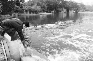 | 海口水网动力工程通水,从南渡江引水激活中心城区水体,使海口东湖的水开始“活”起来。 本报记者 张中宝 摄 |