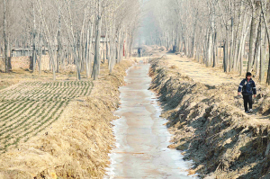 黄河水流入山东省菏泽市鄄城县郑营乡沟渠(2011年1月31日摄)。据山东省黄河河务局水调处介绍,针对该省遭遇的60年一遇的特大旱灾,山东自2010年年底至今,已开启20座黄河涵闸引水抗旱,共引黄河水10.67亿立方米,创近10年来同期之最。新华社发
