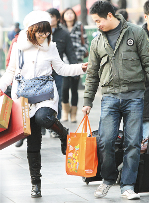 时尚春运 1月31日,一位回家过年的女孩和同伴在上海火车站广场。随着春节进入倒计时,许多在上海工作的年轻人从上海火车站搭乘火车回家过年。风风火火的年轻人的行囊、服饰越来越个性,最新的电脑、手机、耳机、饰物无不透露着新潮与时尚,成为回家路上的一道风景。 新华社记者 陈飞 摄