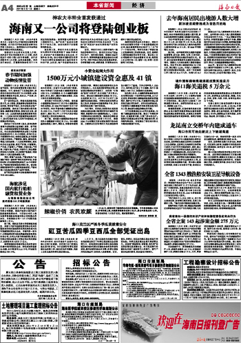 海南日报 本省新闻 004 2011-02-011 2011年02月01日 星期二