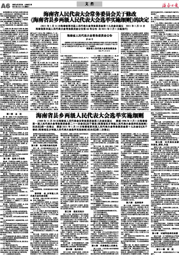 海南省人民代表大会常务委员会关于修改《海南省县乡两级人民代表大会选举实施细则》的决定