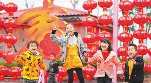 2月1日下午,海口红城湖畔被大红灯笼装扮得喜庆十足。从安徽、湖北等地来海南的农民工子女,在火红的灯笼前面,开心不已。“今年过年不回家,海南就是我们快乐的家!”孩心们道出共同的心声。 本报记者 张杰 摄