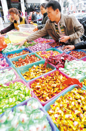 | ↑ 2月1日,海口市博爱南路的年货琳琅满目。
