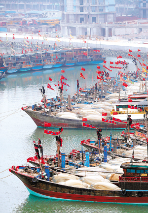 | → 2月1日,海口新港港区内,外出作业的渔船、货船陆续进港锚泊准备过大年。
