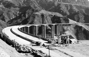 这是保阜高速公路黑崖沟大桥(2月1日摄)。 国家投资114亿元的保阜(保定至阜平)高速公路全长147公里,2007年6月开工,预计今年6月全线通车。该高速公路大部分穿行于河北、山西交界的太行山腹地,地势起伏、山高沟深。此高速路将使沿线的阜平、曲阳、唐县等5县150多万群众受益。 新华社记者 陈树根 摄