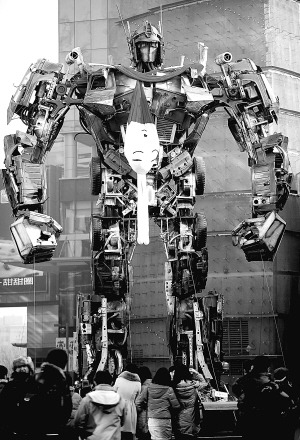2月1日,一座高11米、重21吨的变形金刚“擎天柱”模型亮相沈阳街头。 据介绍,这个模型的部件来自20辆废旧汽车。 新华社发(张文魁 摄)