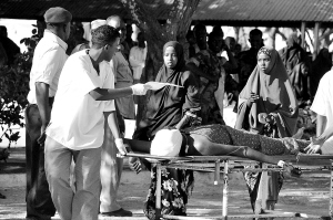 17人死亡 1月31日,在索马里首都摩加迪沙,工作人员将一名伤者运抵医院。 索马里警察部门和医院的消息说,索马里政府军内部31日发生交火事件,已造成至少17人死亡、多人受伤。 新华社/法新