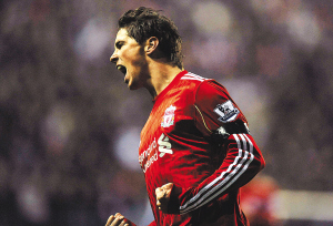 | 托雷斯效力于利物浦队时庆祝进球的资料照片。 新华社发