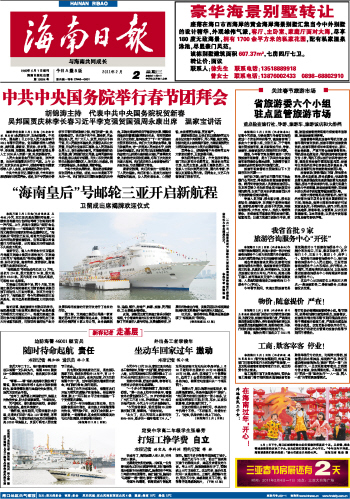 海南日报 头版 001 2011-02-021 2011年02月02日 星期三