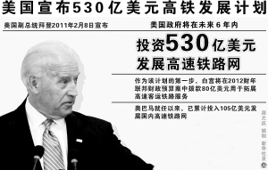 新华社华盛顿2月8日电(记者杜静)美国副总统拜登8日宣布,美国政府将在未来6年内投资530亿美元发展高速铁路网。