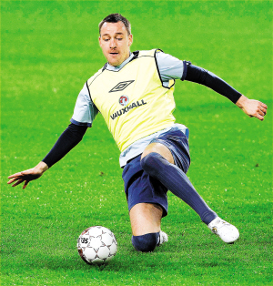 2月8日,英格兰队在丹麦哥本哈根进行训练,备战9日与丹麦队的足球友谊赛。图为英格兰队球员特里在进行训练。 新华社发