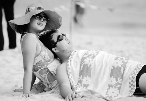 2月5日,三亚亚龙湾海滩上,一对甜蜜的情侣在享受温暖阳光。 本报记者 王凯 摄