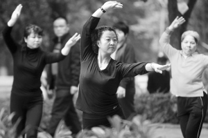 →在公园里做操健身,成为不少市民度过春节假期的时尚选择。