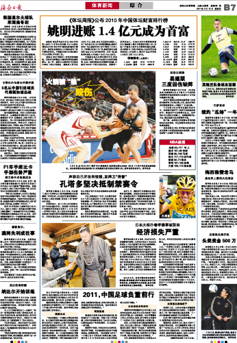 海南日报 体育新闻 015 2011-02-101 2011年02月10日 星期四