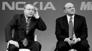 2月11日,诺基亚总裁兼首席执行官斯蒂芬·埃洛普(左)和微软总裁史蒂夫·鲍尔默(右)出席在英国伦敦举行的新闻发布会。 全球最大手机生产商诺基亚11日宣布进行重大战略调整,同微软建立战略合作伙伴关系,将微软视窗操作系统作为诺基亚的主要智能手机平台。 诺基亚首席执行官斯蒂芬·埃洛普当天还表示,诺基亚将进行领导层和组织架构改革,并建成更加高效的领导团队。为此,诺基亚将在全球范围内进行大规模裁员,其中包括总部芬兰在内。 新华社/法新