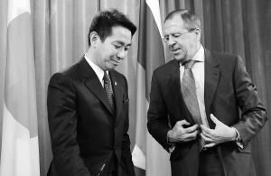 2月11日,俄罗斯外长拉夫罗夫(右)与日本外相前原诚司(左)出席新闻发布会。新华社/法新 据新华社莫斯科2月11日电 日本外务省新闻发言人佐藤悟11日在莫斯科表示,日本反对俄罗斯邀请第三国对北方四岛(俄称南千岛群岛)进行任何投资。 俄罗斯总统梅德韦杰夫9日在莫斯科会见俄国防部长和地区发展部长时说,南千岛群岛具有战略意义,是俄罗斯不可分割的领土。应采取一切措施加强俄在这一地区的存在。同时,俄方愿意同所有邻国发展睦邻友好关系,其中包括就南千岛群岛的一些项目展开合作。