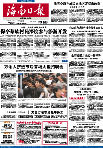 海南日报 头版 001 2011-02-131 2011年02月13日 星期日