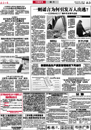 海南日报 中国新闻综 合 003 2011-02-131 2011年02月13日 星期日