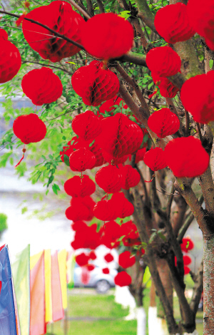 | 2月19日,我省两会召开前夕,会场外彩旗飘飘、灯笼高挂,烘托喜庆隆重的气氛。 本报记者 李英挺 摄 |