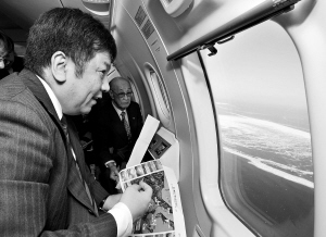 2月19日,日本内阁官房长官枝野幸男搭乘飞机从空中视察日本同俄罗斯存有归属争议的北方四岛(俄方称南千岛群岛)。 新华社/路透