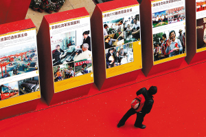 亮点之四,运用电子模拟、大屏幕等“流媒体”,营造区别于平面展览的层次感。刘军说,前四个展区看到的都是平面,我们特意在第五展区进行一个区分,营造一条让人眼前一亮的“时空隧道”。“时空隧道”里既有“十一五”的各项发展指标,又有“十二五”的展望,所有成就浓缩于一部时长20分钟的专题片。