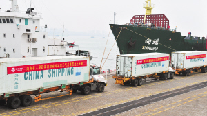 | 海口秀英港集装箱码头装运海南瓜菜。 本报记者 古月 摄 |