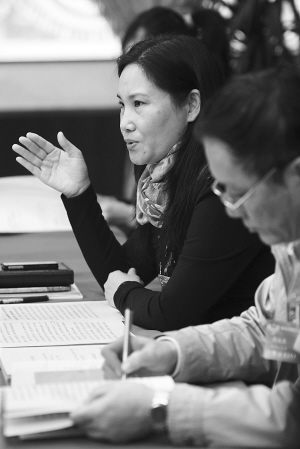 ↑2月20日,政协海南省五届四次会议举行分组讨论,委员许振凌畅谈旅游和文化的关系。 本报记者 李英挺 摄