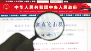 | 2009年9月,中央人民政府门户网转载《海南省人民代表大会常务委员会关于进一步完善省直管市县管理体制的决定》,引起全国关注。本报记者 李英挺 摄 |