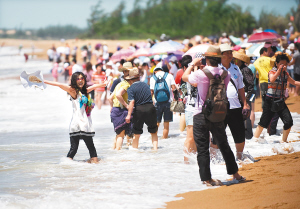 | 博鳌亚洲论坛带动了琼海旅游。图为游客在博鳌玉带滩上感受阳光、沙滩的美丽与浪漫。 本报记者 王凯 摄 |