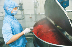 | 海南椰国食品有限公司的“椰子水发酵制作的食用纤维及其生长方法”专利累计投入1500多万元,年产规模达20000吨。 本报记者 王凯 摄 |
