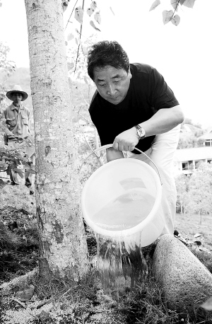 二○○七年,著名相声演员姜昆在三亚南山景区种下一棵菩提树。二月二十日,姜昆旧地重游,为他种下的菩提树浇水。 本报记者 苏建强 特约记者 陈文武 摄