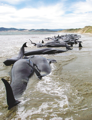120头巨头鲸在新西兰海滩