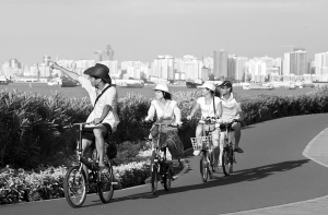 | ▲今年我省将加快建设国际一流的旅游度假目的地。图为广东游客在海口西海岸骑行观景。 |