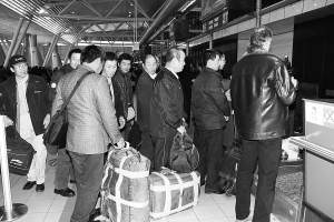 2月23日,从利比亚撤出的中国公民带着行李准备离开保加利亚的索非亚机场。 10名在利比亚工作的中国公民搭乘保加利亚政府派往利比亚撤离本国公民的包机,于当地时间23日11时安全撤至保加利亚首都索非亚。中国驻保加利亚大使郭业洲带领使馆工作人员前往机场迎接,并帮助安排这10人经莫斯科转机回国。 新华社发