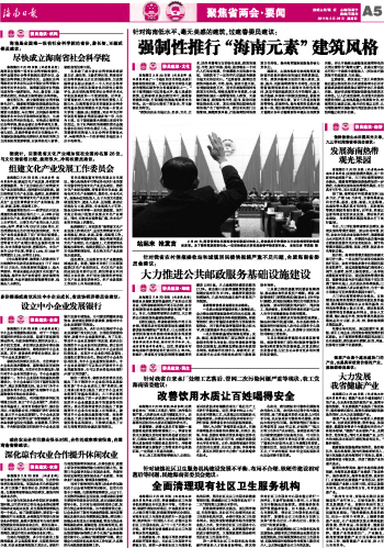 海南日报 聚焦省两会·要闻 005 2011-02-241 2011年02月24日 星期四