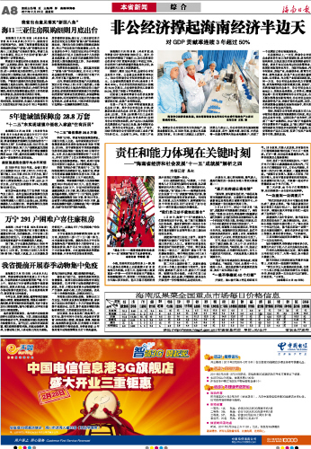 海南日报 本省新闻 008 2011-02-241 2011年02月24日 星期四